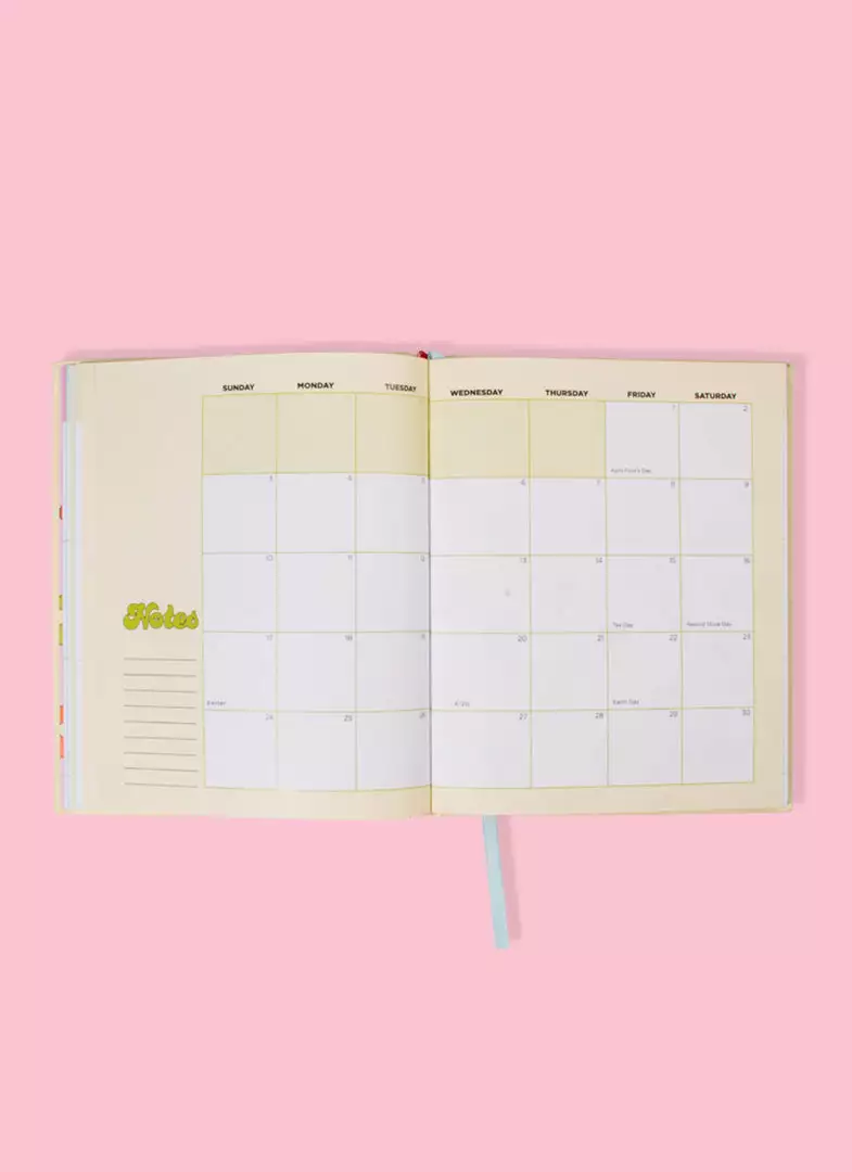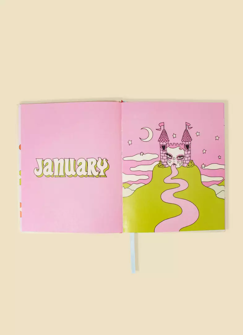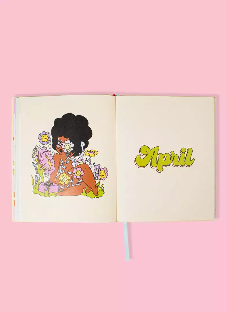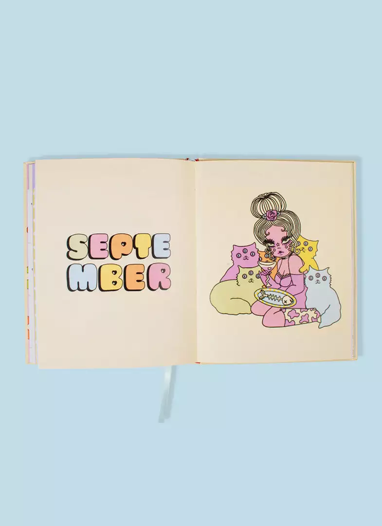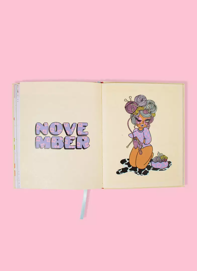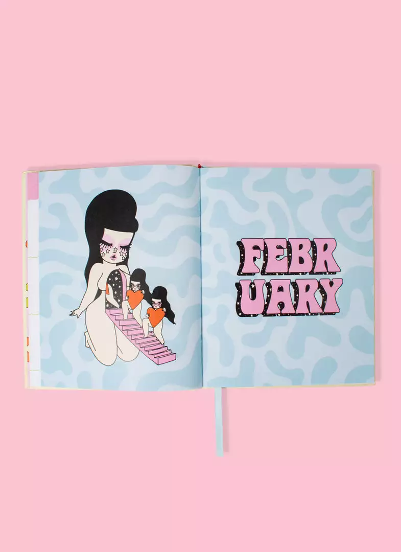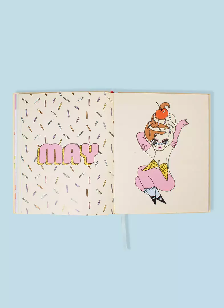 This hard cover, colorful planner includes original artwork by Valfré for each month of the year, 5 pages of stickers, a monthly calendar, a weekly calendar, pages for notes, and witty artwork for key dates throughout.
