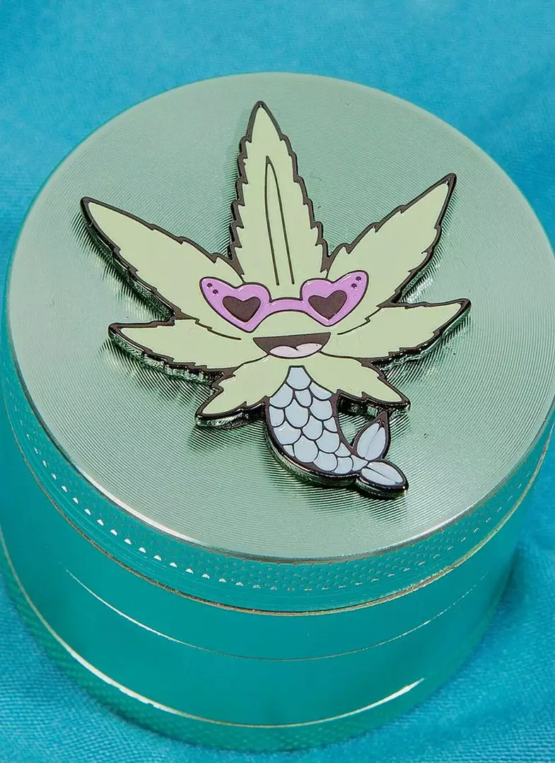 This blue grinder features 4 pieces and original Valfré artwork