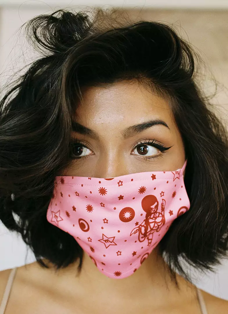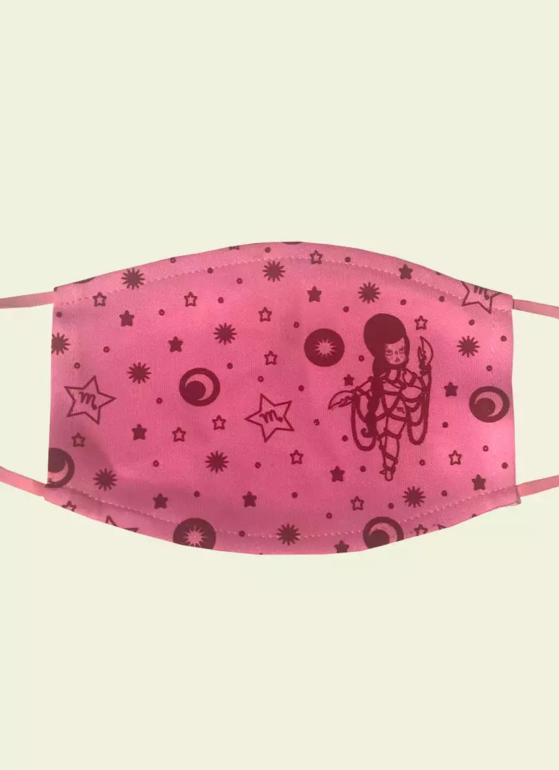This soft face mask features original Valfré Zodiac artwork. Made of stretchy polyester material and features adjustable straps. One size fits most.